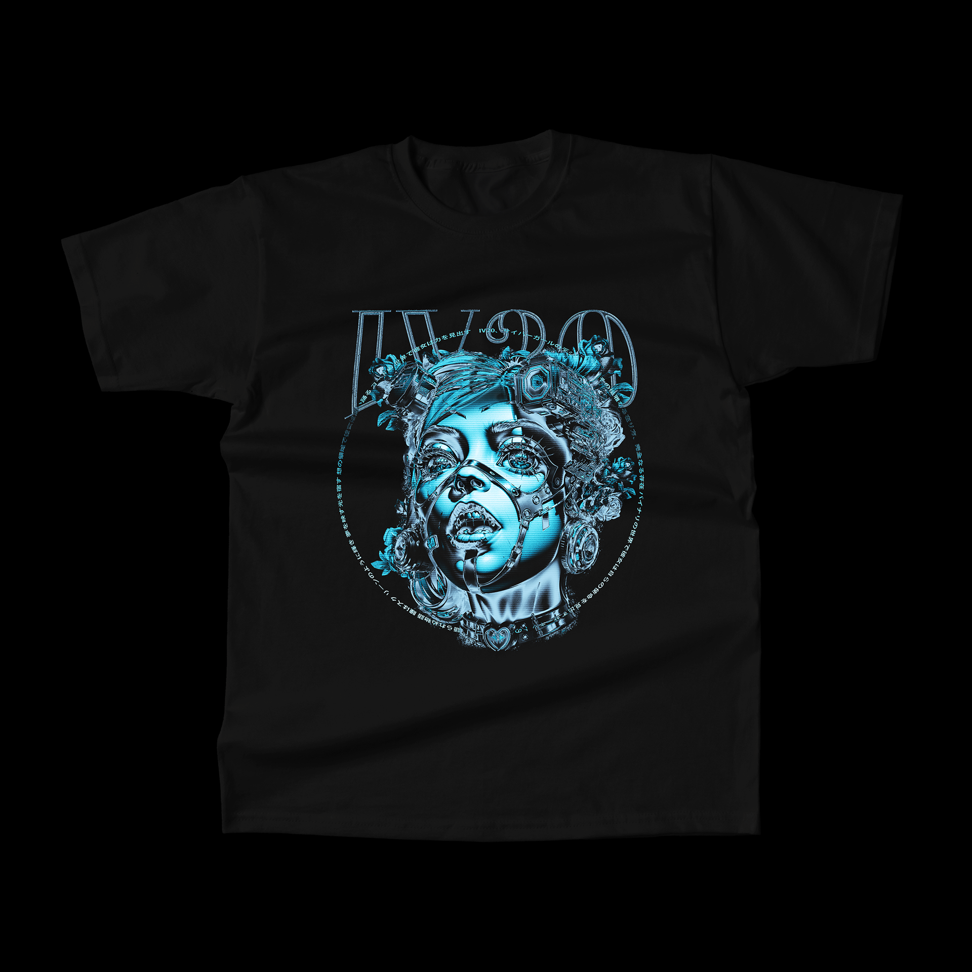 I'm thrilled to present 'TEARS', a complex print design project that blends graphic art with technology. Using a combination of Deforum and Photoshop, I've crafted a dynamic composition that melds evocative text with the captivating image of a beautiful female bust adorned in futuristic bondage.